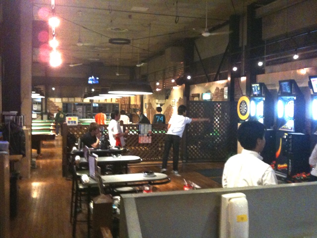 ビリヤード8台、ダーツ10台(うちライブ2は2台)の店でした。