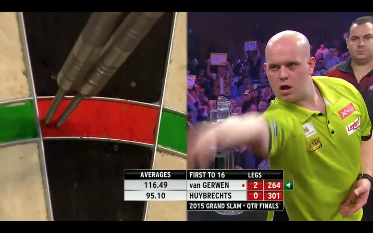そうしたらもうダーツがボードに届くスローの完成です。