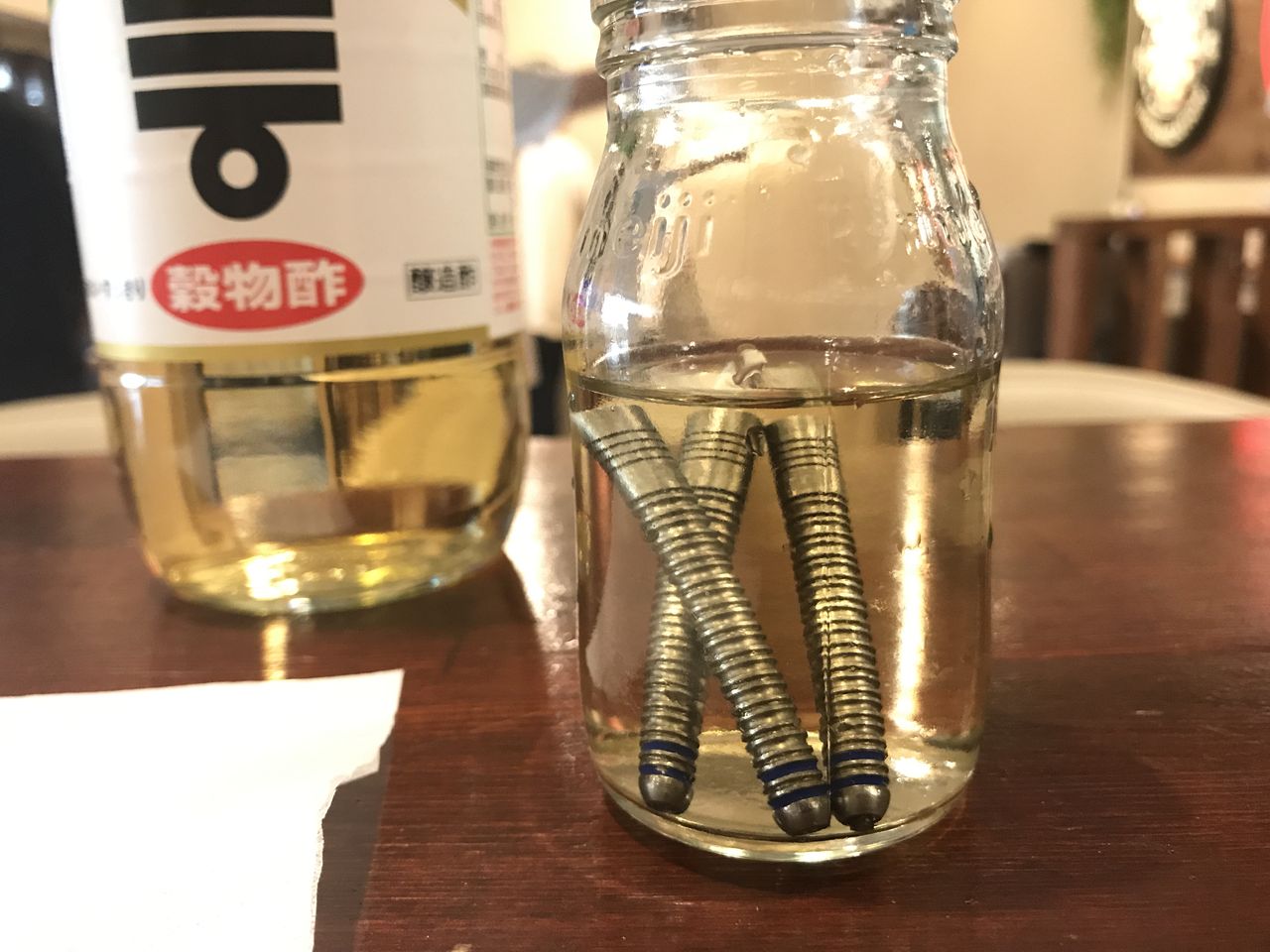 最初はこまめにお酢を新しくするんですが、鉄が溶けたお酢がメッチャ臭いんですわー。